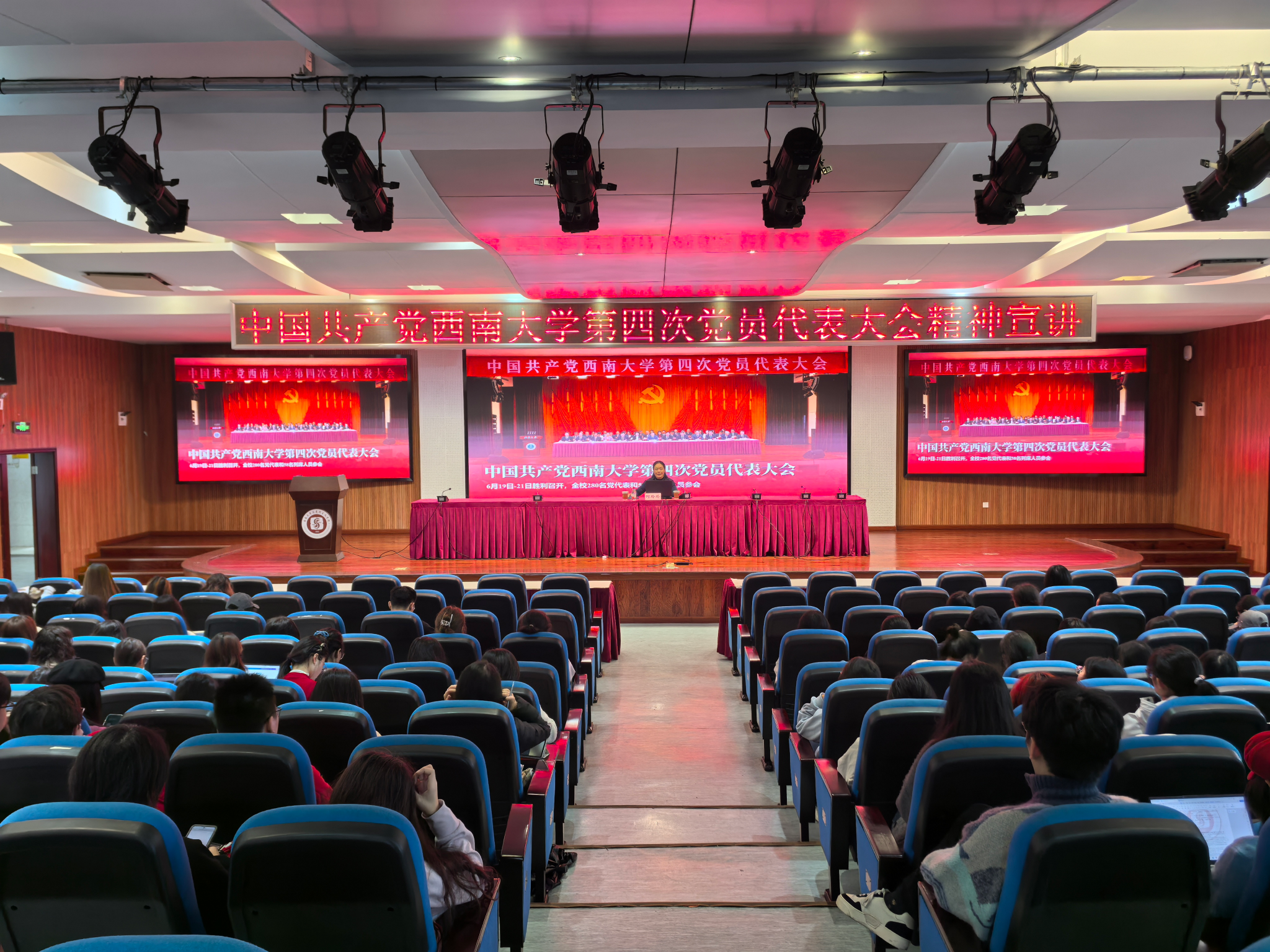 2025年6月20—21日中国共产党西南大学第四次党员代表大会胜利召开。根据学校党委统一部署,结合学院实际,于9月25日—11月21日学院党委宣讲团成员吴文杰、王永友、邹绍清、何玲玲、李心悦分别对马克思主义学院全体博士生、硕士生、本科生就学校第四次党代会精神进行全覆盖宣讲。