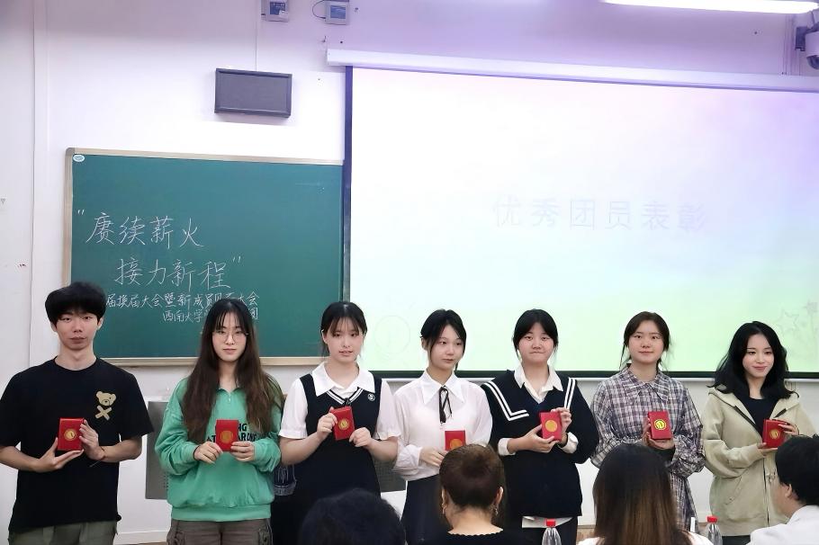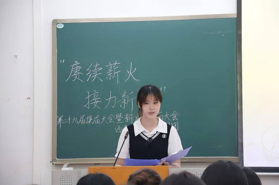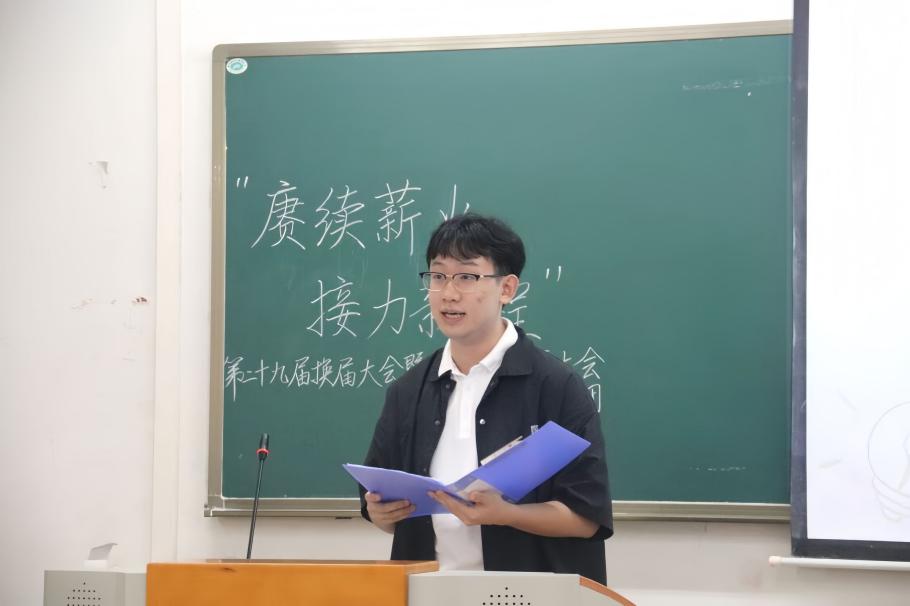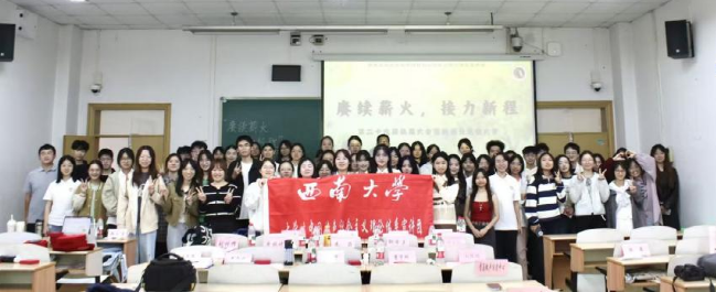 为促进团内家文化建设,西南大学大学生中国特色社会主义理论体系宣讲团(以下简称“学生宣讲团”)于2025年10月17日下午在第八教学楼405教室举办了“赓续薪火·接力新程”第二十九届换届大会暨新成员见面大会。参与此次大会的成员有学生宣讲团第二十八届部分团员、第二十九届全体团员以及来自学院学生组织的四位嘉宾。