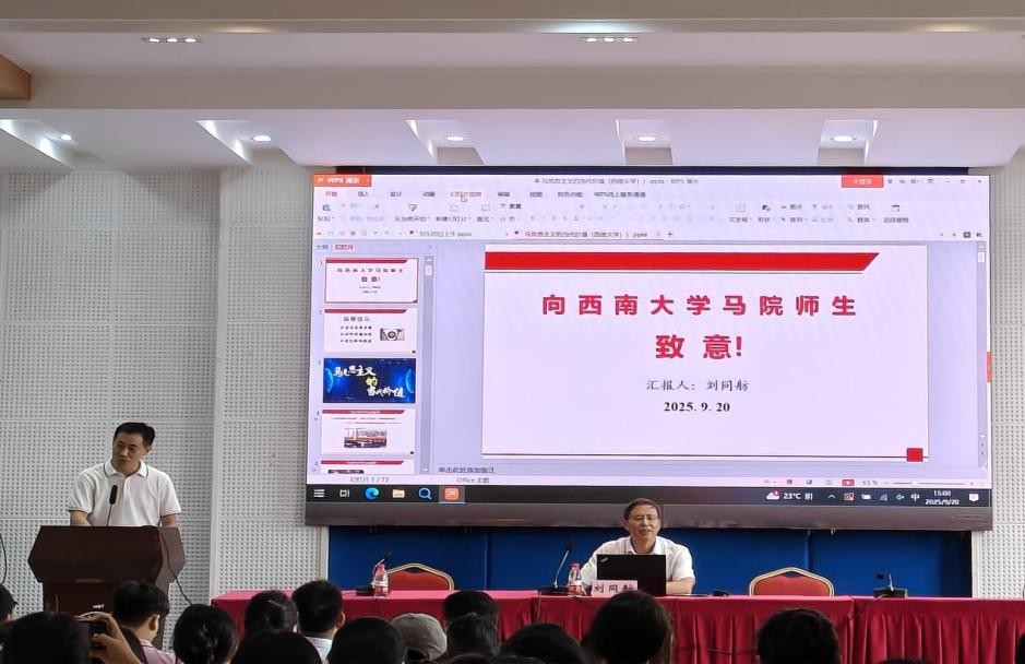 2025年9月20日,浙江大学马克思主义学院刘同舫教授受邀莅临学院,开展主题为“马克思主义的当代价值”的学术讲座。讲座由西南大学党委常委、副校长白显良教授主持,马克思主义学院师生代表参加。