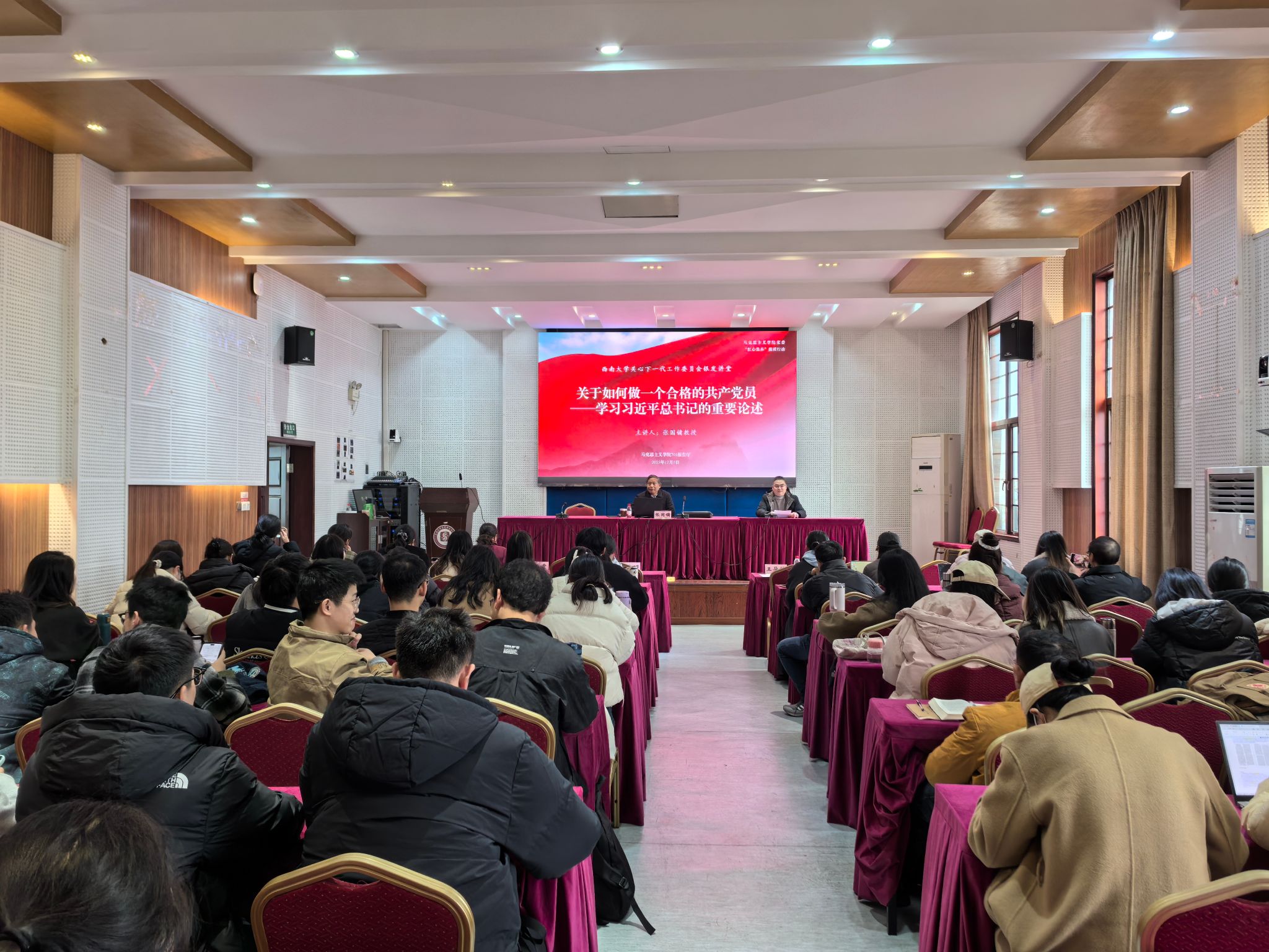 2025年12月5日14:30于学院501报告厅开展“西大红”五老服务团银发讲堂,我院退休教师张国镛教授就“如何做一名合格的共产党员——学习习近平总书记的相关重要论述”进行讲授。西南大学关工委副秘书长、“西大红”引航服务部部长周大明、“西大红”五老服务团成员、马克思主义学院关工委副主任曾光霞副教授,学院各党支部书记和部分学生党员代表参加讲座,讲座由学院纪委书记、副处级组织员王华敏主持。