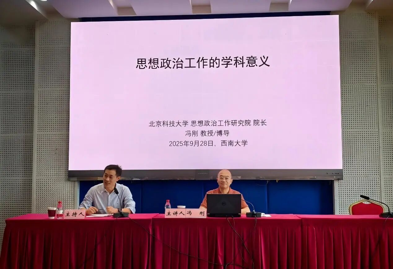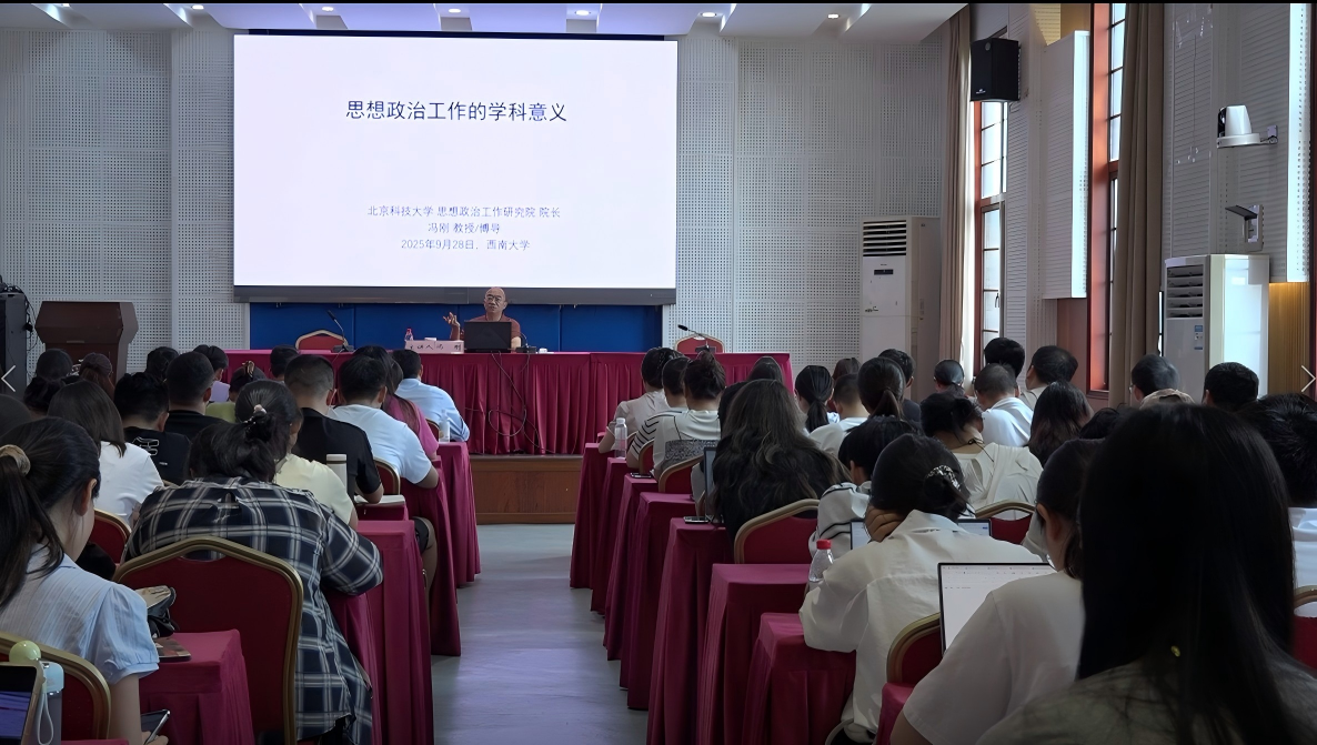 9月28日下午,北京科技大学思想政治工作研究院院长、马克思主义学院博士生导师冯刚教授应邀来学院作以“思想政治工作的学科意义”为主题的学术报告。报告由西南大学党委常委、副校长白显良教授主持,马克思主义学院师生代表参加。